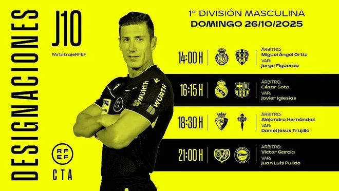 西班牙足协公布了周日的4场西甲裁判人选,索托-格拉多将执法西班牙国家德比。本场比赛,爱奇艺体育将免费直播。